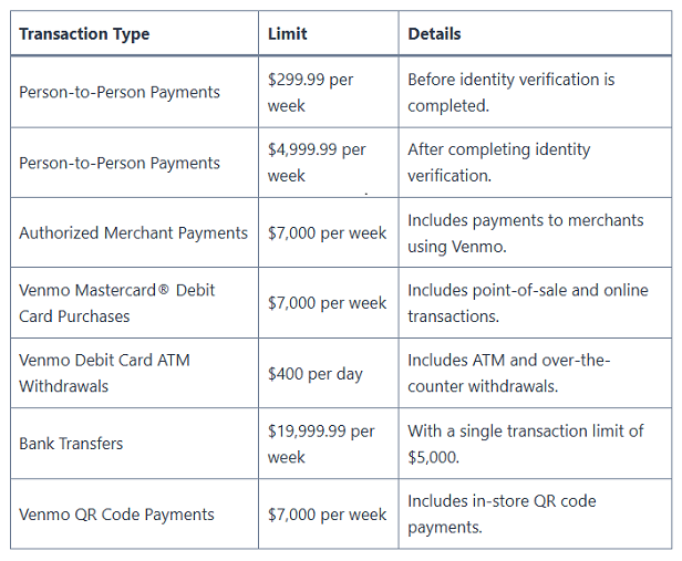 • The Venmo limits are also imposed for the security of your account.