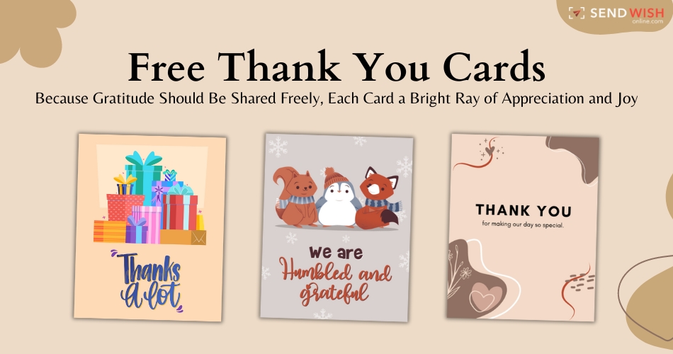 Thank you cards from Sendwishonline.com offer a unique and heartfelt way to express your gratitude. In today's fast-paced digital world, taking a moment to send a personalized thank you cards can make a significant impact. Sendwishonline.com makes this process incredibly easy and convenient, allowing you to create and send beautiful thank you cards from the comfort of your home. Whether you're thanking a friend for a thoughtful gift, expressing appreciation to a colleague for their support, or acknowledging a customer for their business, Sendwishonline.com has a wide variety of designs and customizable options to suit any occasion. Visit to:- https://sendwishonline.com/en/group-cards/thank-you