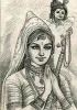 As an infant Meera became deeply enamored of an iconic idol of Krishna owned by a visiting holy man; she was inconsolable until she possessed it and probably kept it all her life. (But some myths say that Meera saw a wedding procession of a bride-groom and asked her mother about her husband, then her mother took her in front of the family deity Lord Krishna. ) Then she was just five years old. She was highly influenced by her father as he was a sole worshipper of Krishna. But because she would not be able to keep the Lord happy the holy man took away the idol. Then she, her friend Lalita and her male cousin , Jaimal, went to the holy man or saint's house to get the idol back. When they went they saw that whatever the saint was offering to the Lord was not accepted. Then some ancient myths say that the idol started crying. Then next day the idol was given back to Meera and since then it remained with her. This made a bond between her and Lord and she was called "stone lover". She even organized a marriage with the idol. And she considered herself as spouse of Lord Krishna.